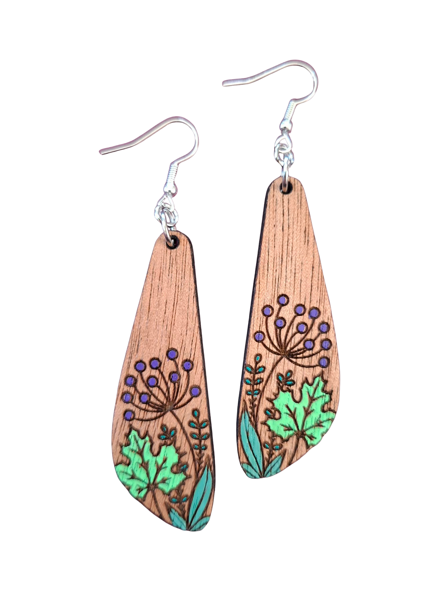 Glittery resin and wood drop earrings - blue-green