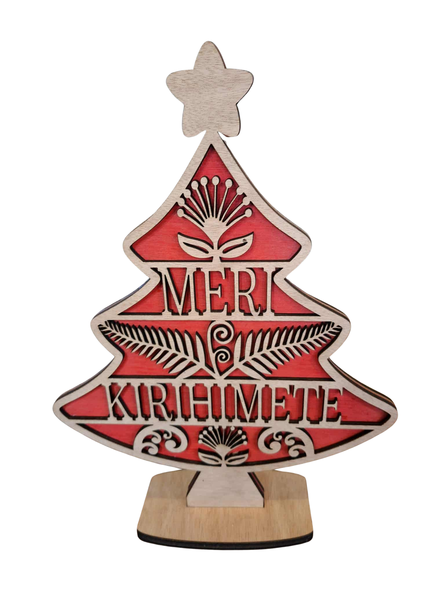 Double sided 30 cm table top tree - Merry Christmas/Meri Kirihimete
