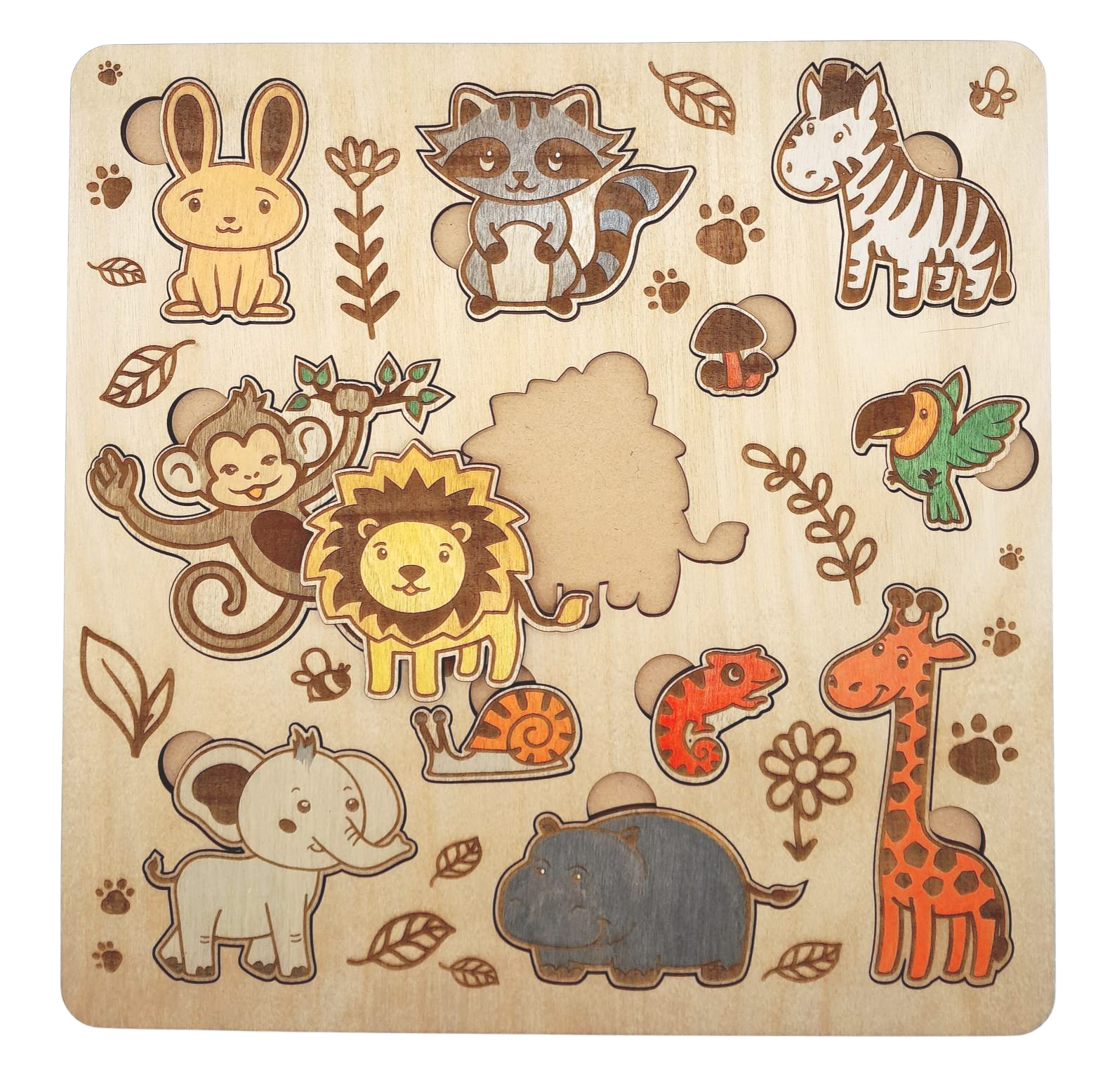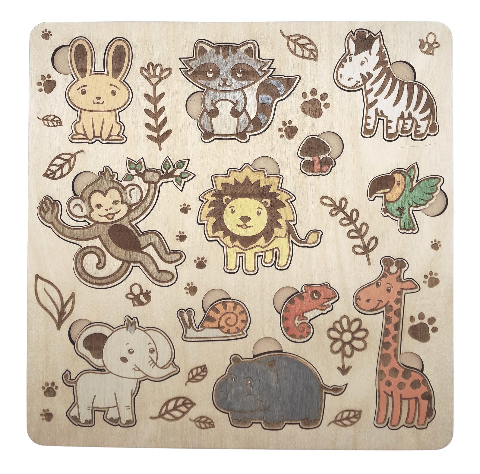 This beautiful jigsaw puzzle has been laser cut and engraved on 4mm birch ply before being hand painted with non toxic acrylic paints. Puzzle pieces are then varnished for durability with non toxic acrylic varnish, the puzzle base is not varnished allowing for the beauty of the natural wood to show. Each piece has a wee notch so you can get the pieces out easily. The backing board is 4mm thick MDF so total thickness of your puzzle is 8mm. Your jigsaw measures 30cm x 30cm and made in NZ