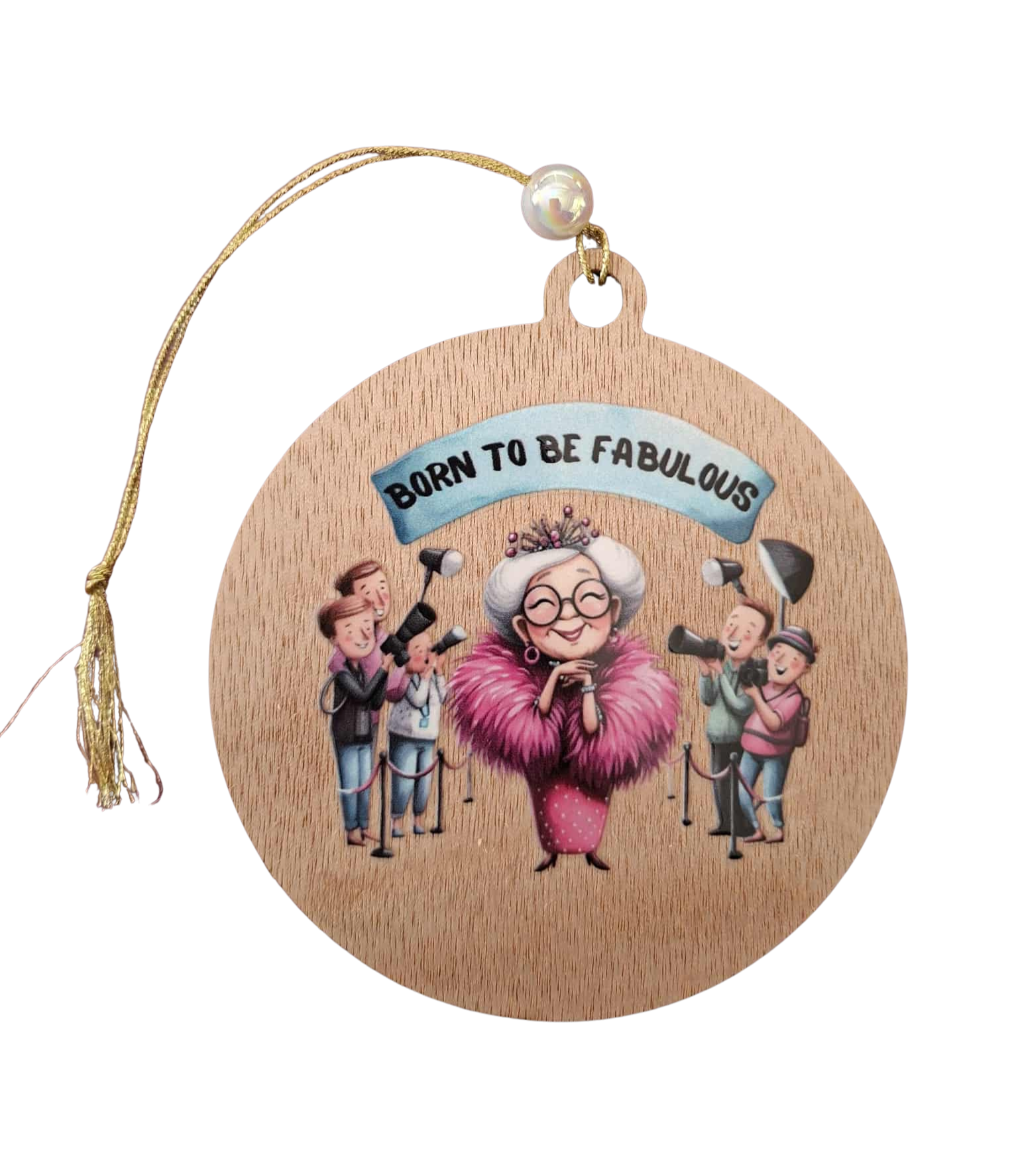 Cut from kadamu wood, we add a very high quality glossy graphic to the front than finish with a pearl style bead and metallic thread for hanging. This wee sign is 9.5 cm across and 10.5 cm long with the string. For a fun gift check out our range to find the perfect saying/picture for the women in your life!