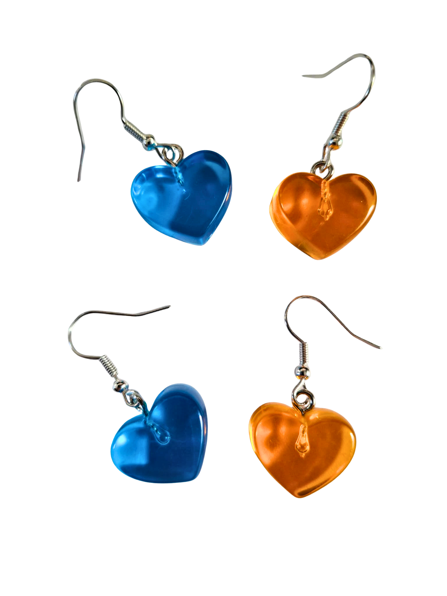 Brighten your look with these glowing chunky perspex heart earrings! Designed to reflect the light and add a bold splash of colour, they’re available in vibrant orange and blue. Finished with hypoallergenic silver-tone hooks for all-day comfort.