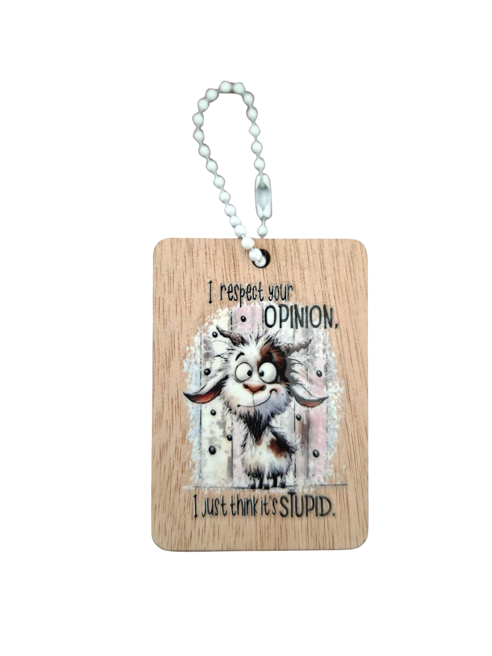 Laser cut in NZ with a UV vinyl transfer applied and finished with a chain ready to add to your key ring. Measuring approx 6.5cm long and 4.5cm wide they are ready to gift to the weirdo's you know!
