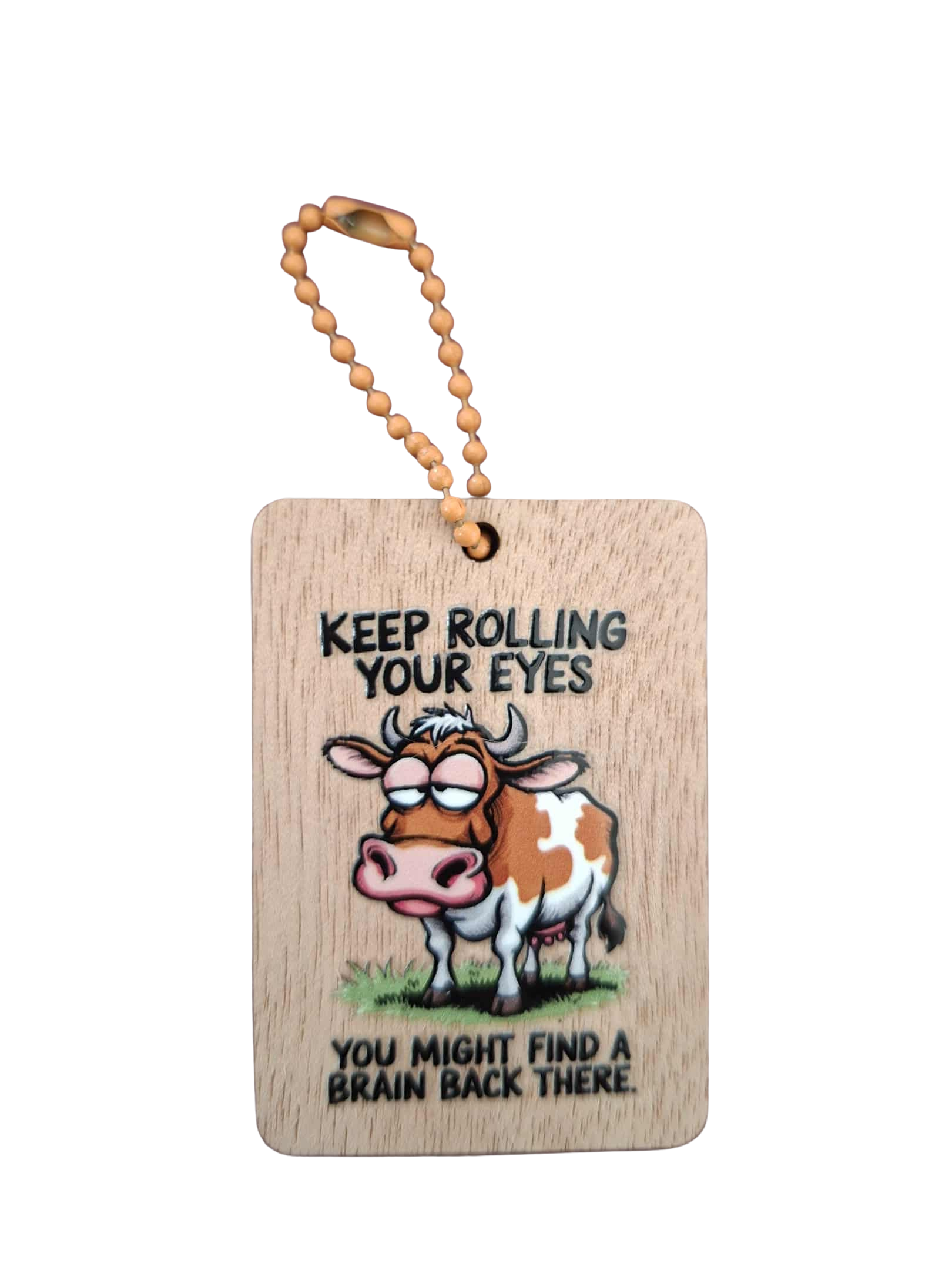 Laser cut in NZ with a UV vinyl transfer applied and finished with a chain ready to add to your key ring. Measuring approx 6.5cm long and 4.5cm wide they are ready to gift to the weirdo's you know!