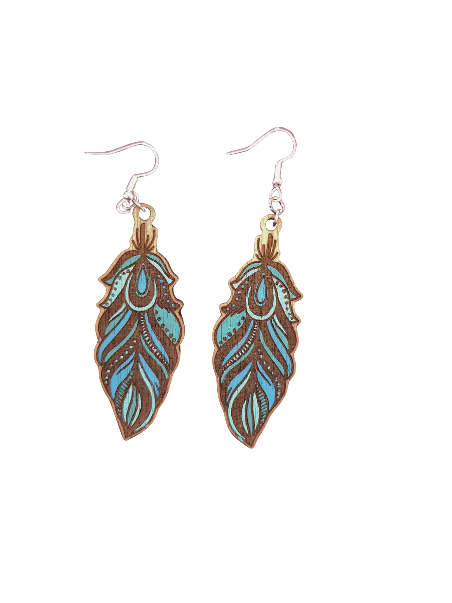 These earrings have been laser cut and engraved then meticulously hand painted. Hung on silver hyper-allergenic hooks your earrings are ready to wear or gift. Your earrings are 60 mm long without the hooks.