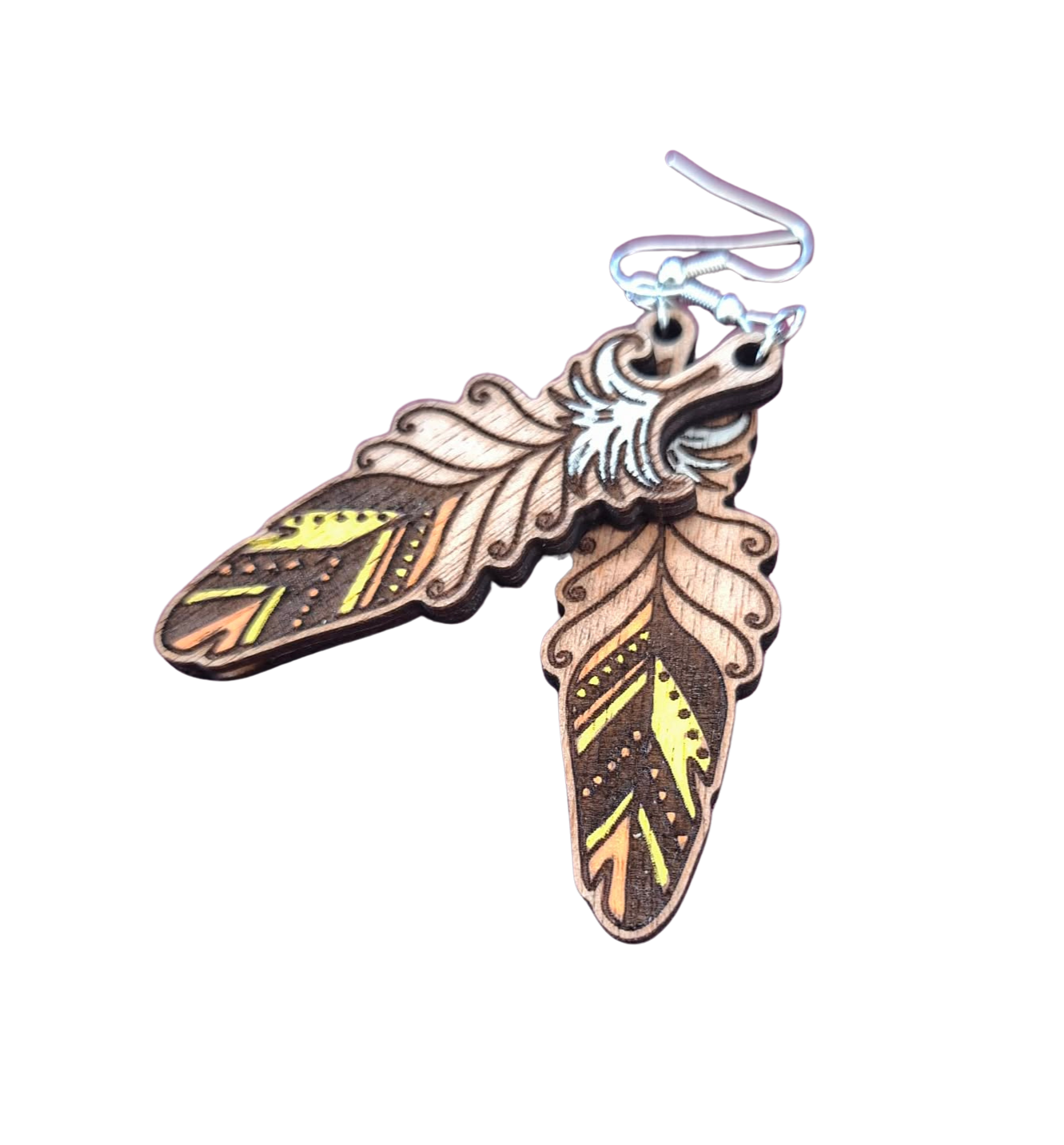 Beautifully laser cut and engraved, these feather earrings are lovingly hand-painted, making every pair one of a kind. Finished with hypoallergenic hooks, they’re lightweight and comfortable to wear. Each feather measures 60 mm, not including the hooks.