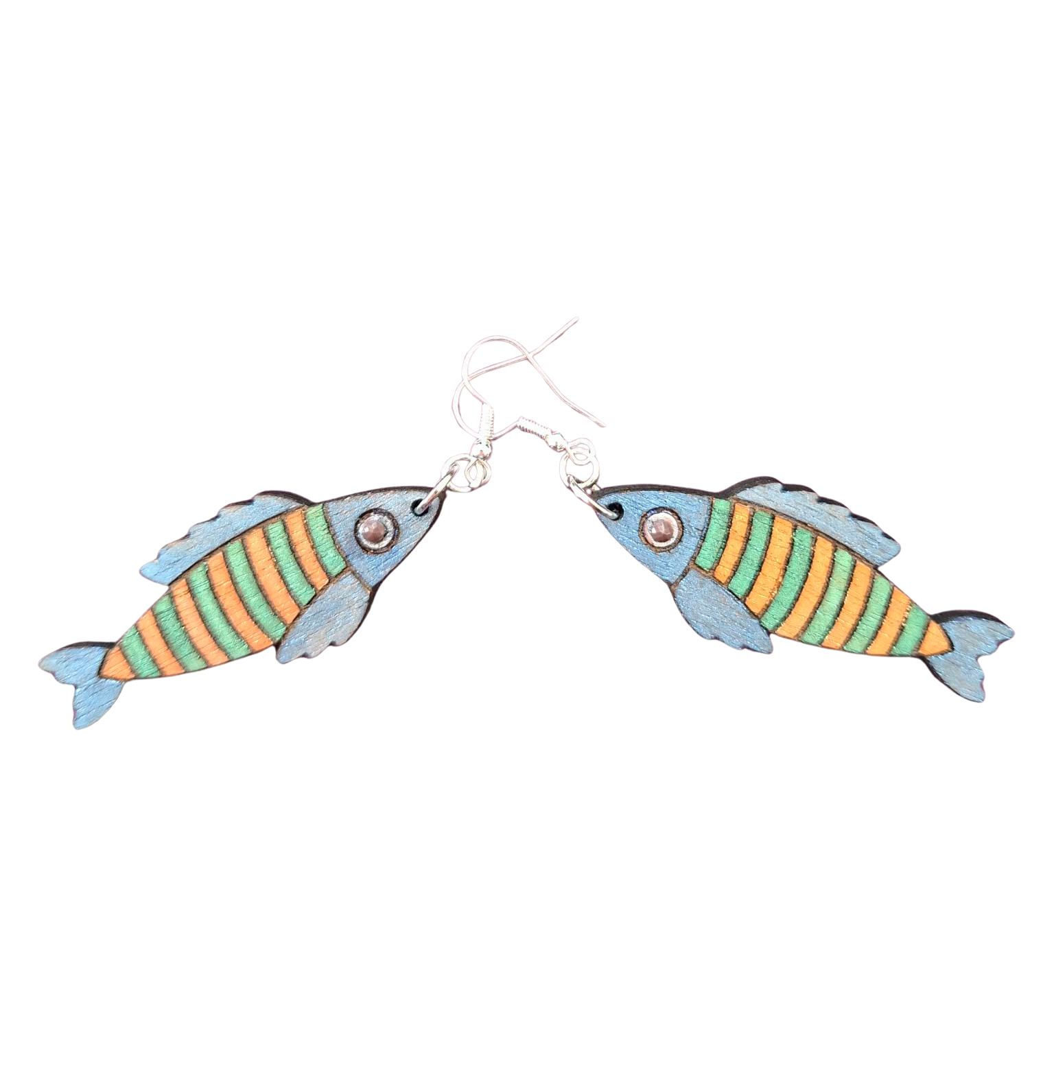 These beautiful fish earrings are laser cut and engraved, then painstakingly hand-painted before being finished with a sparkling diamond-dot eye and hypoallergenic silver hooks. No two pairs are exactly the same, making each set truly one of a kind. You will receive the colour in the first pictures - picture with ruler is for size reference only.