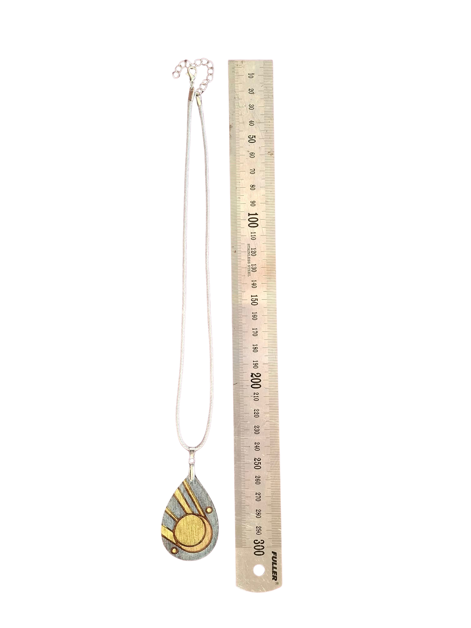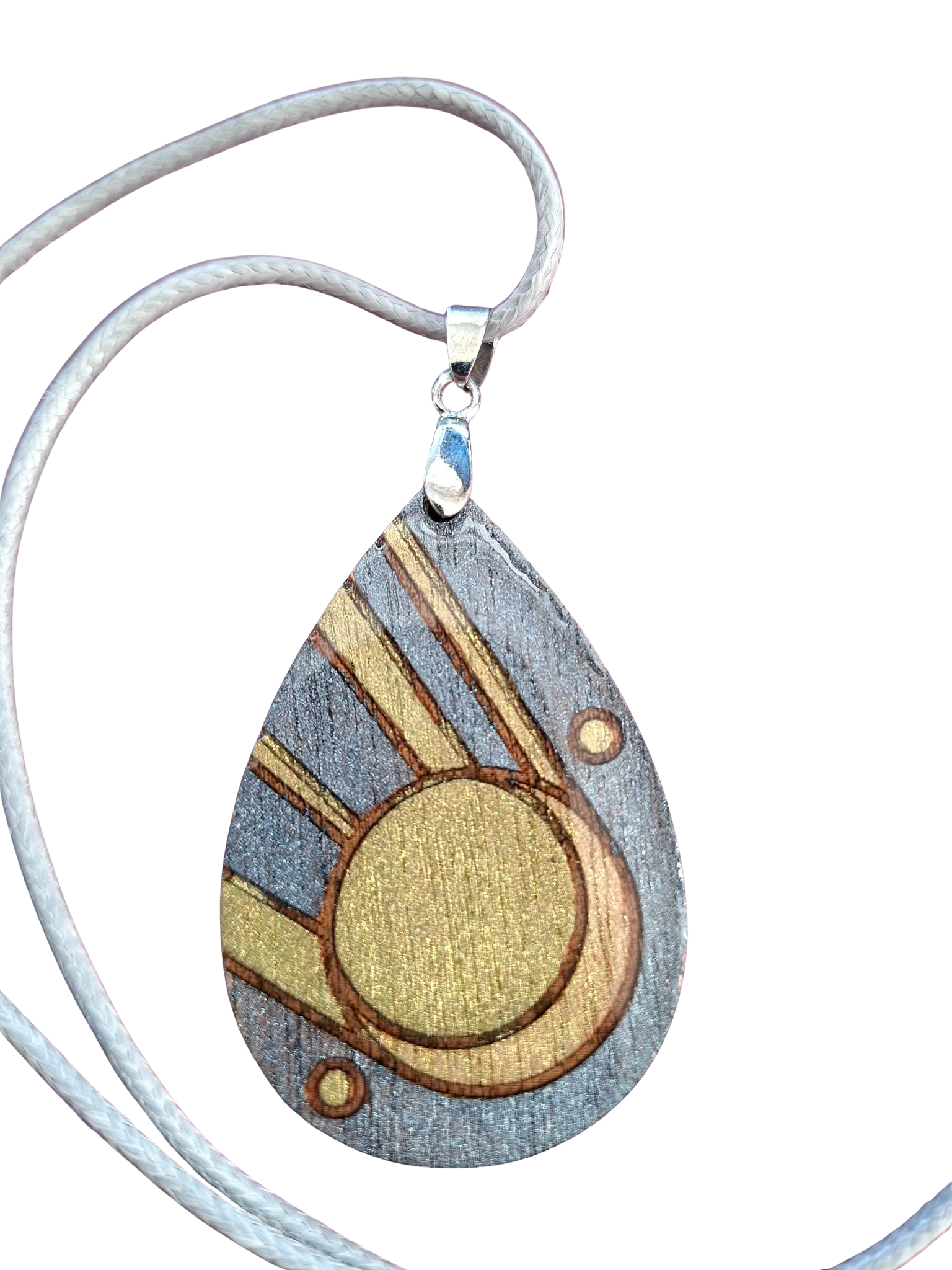 This exquisite necklace is masterfully crafted, beginning with precision laser cutting and fine engraving, on 4mm thick wood, to create its refined form. Each piece is then meticulously hand-painted, ensuring unique artistry and impeccable detail. A lustrous layer of premium clear resin is applied to enhance brilliance and provide enduring protection. Finished with a supple waxed cord and a chain extender in a matched hue, this piece embodies sophistication and craftsmanship. Proudly handcrafted in New Zealand.