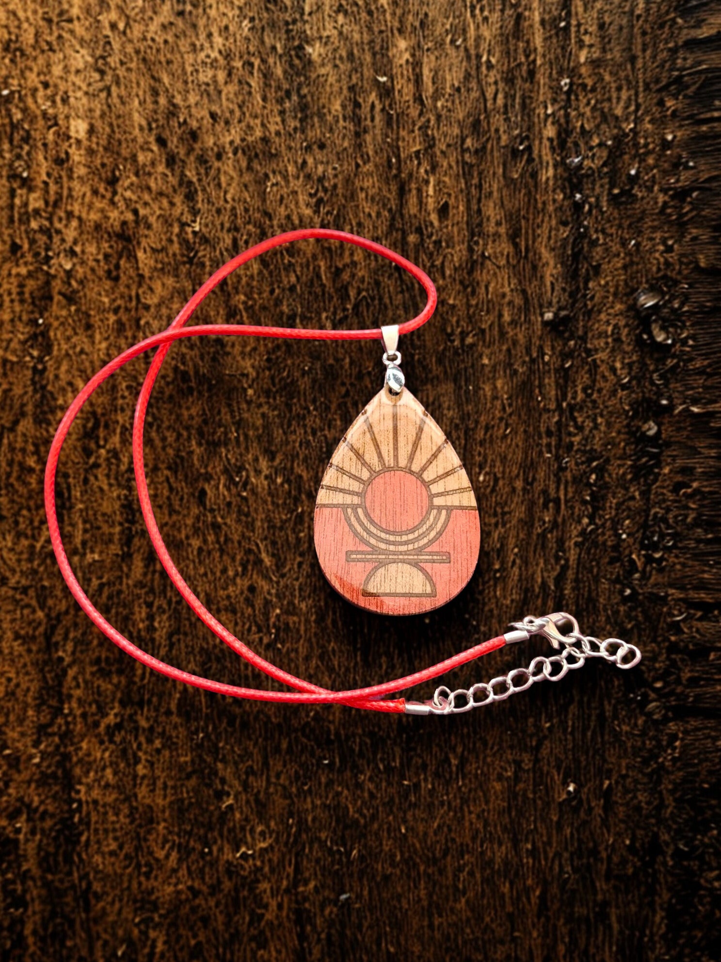 This exquisite necklace is masterfully crafted, beginning with precision laser cutting and fine engraving, on 4mm thick wood, to create its refined form. Each piece is then meticulously hand-painted, ensuring unique artistry and impeccable detail. A lustrous layer of premium clear resin is applied to enhance brilliance and provide enduring protection. Finished with a supple waxed cord and a chain extender in a matched hue, this piece embodies sophistication and craftsmanship. Proudly handcrafted in New Zealand.