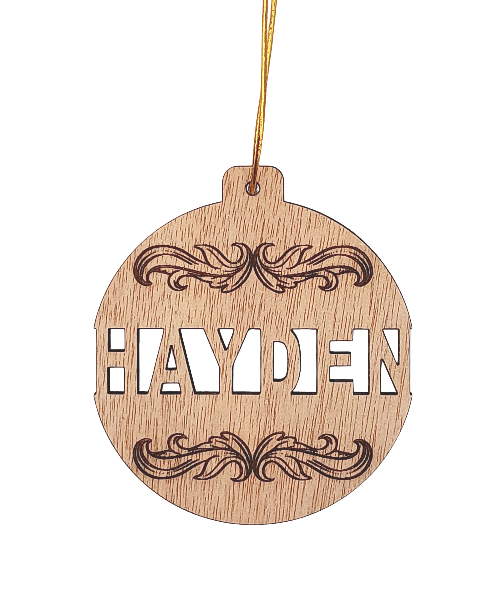 These decorations will be personalized with the name of your choice and laser cut and engraved on kadamu ply than strung with gold elastic for ease of hanging. Approx 9 x 8cm at widest points. Add the name you want under the quantity before you put it in your cart. Please ensure spelling is correct as we will cut what you put in that box.