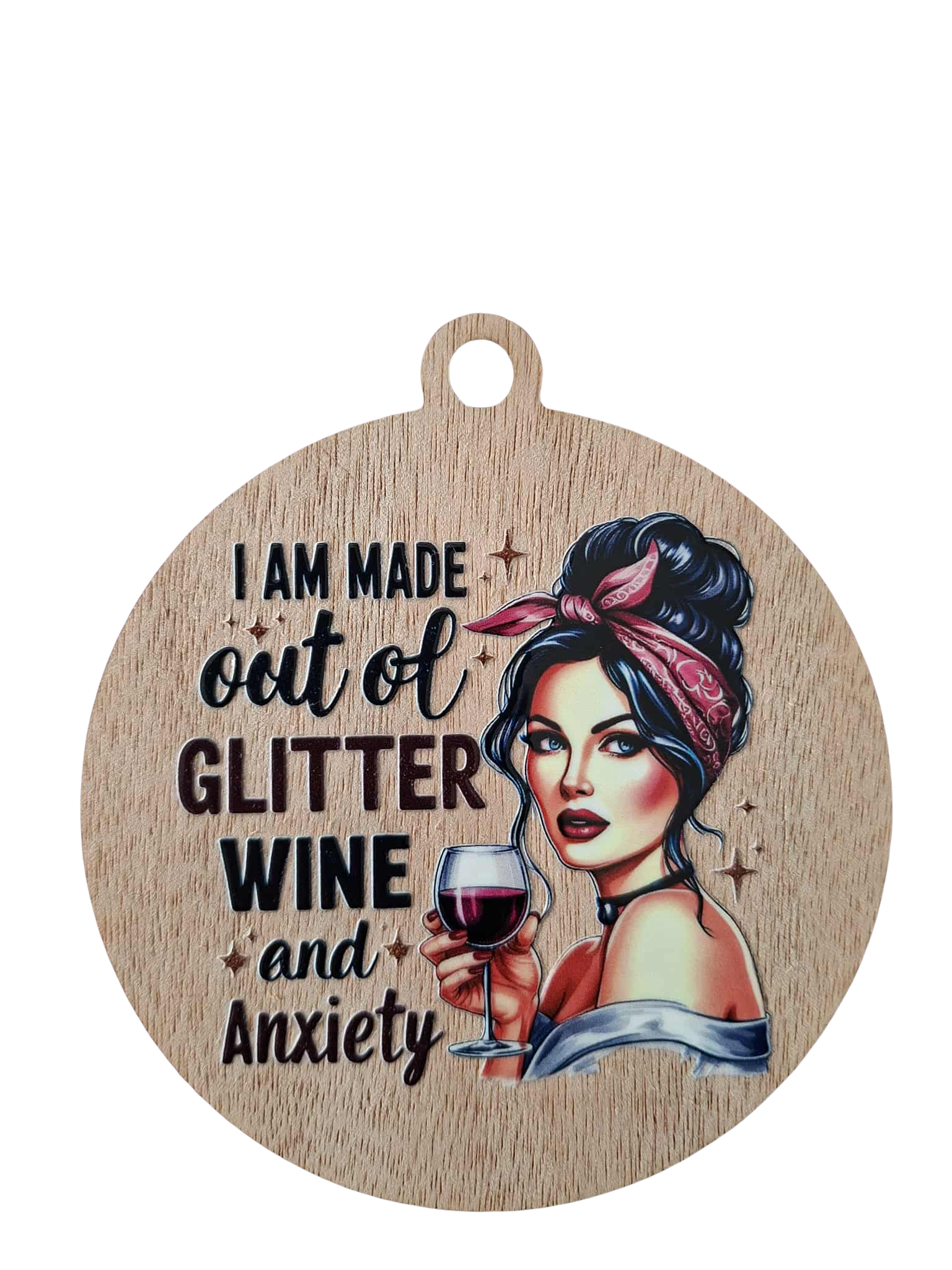 You can hang this item on a cord or ribbon of your choice or use it as a fridge magnet. Cut from kadamu wood we add a very high quality glossy graphic to the front and a flat magnet on the back. This wee sign/magnet is 9 cm across and 10 cm long. For a fun gift check out our range to find the perfect saying/picture for the women in your life!