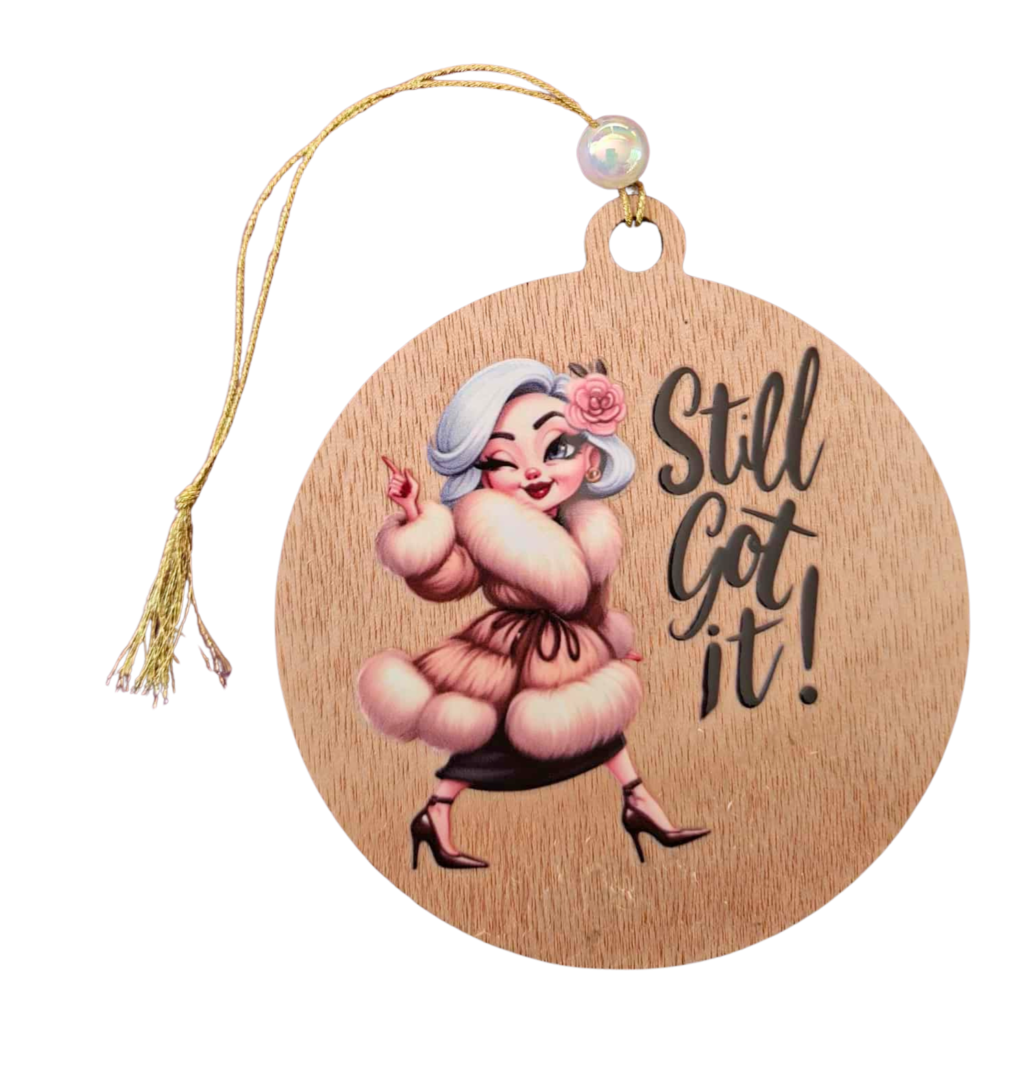 Cut from kadamu wood, we add a very high quality glossy graphic to the front than finish with a pearl style bead and metallic thread for hanging. This wee sign is 9.5 cm across and 10.5 cm long with the string. For a fun gift check out our range to find the perfect saying/picture for the women in your life!