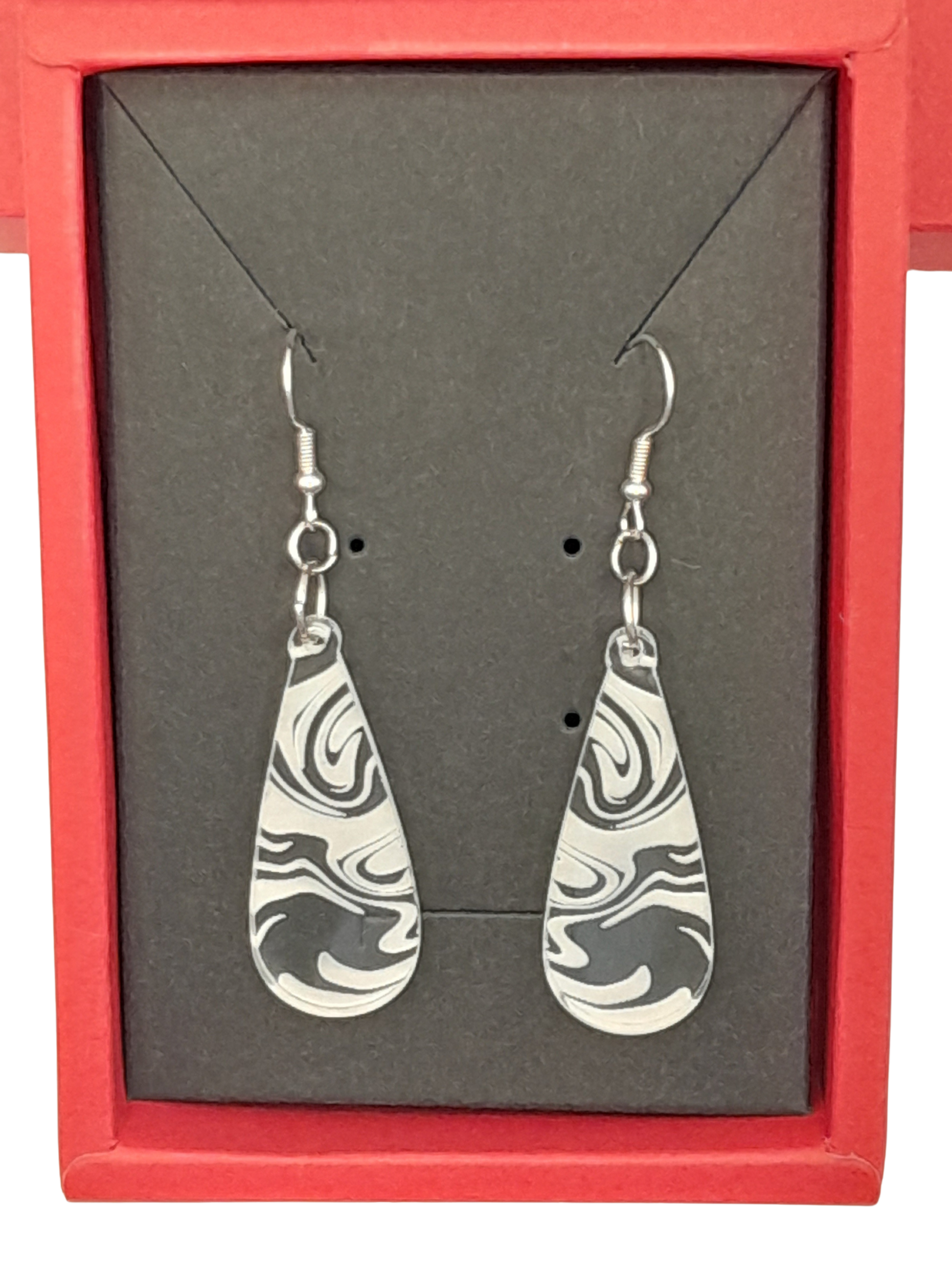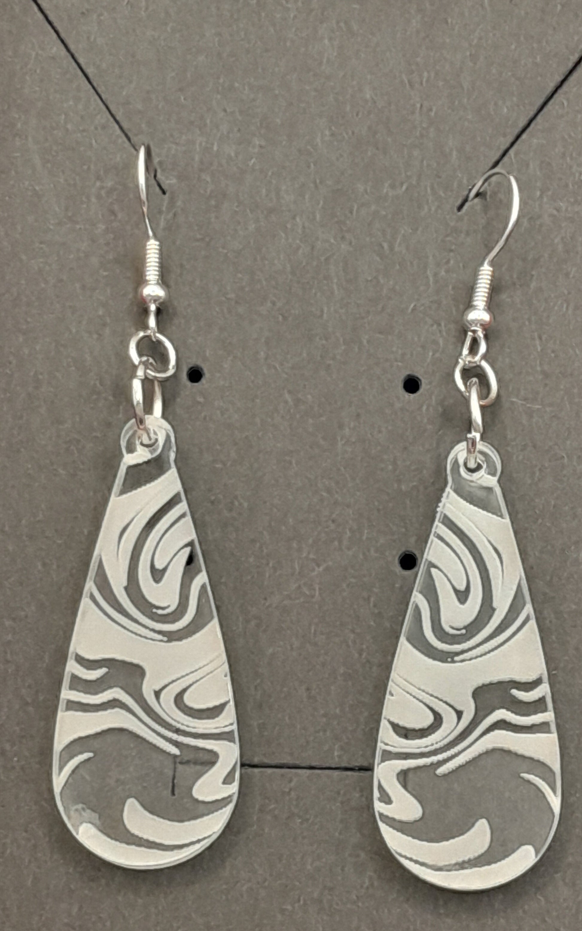 Laser cut and engraved clear acrylic earrings to go with any outfit - we have have laser cut these and engraved the swirly pattern for contrast and interest. These earrings measure approximately 1.7cm across and 4.2cm down without the hooks. Your earrings will be sent in a box ready to gift.