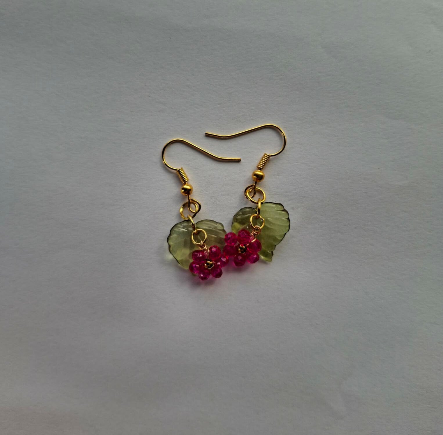 These exquisite earrings showcase a delicately handwoven flower crafted from tiny Czech crystal beads, beautifully set against a clear green acrylic leaf. Finished with gold-tone hypoallergenic hooks, they catch the light effortlessly, bringing a refined touch of colour and subtle sparkle to any ensemble.